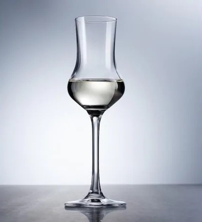 Grappa: Grappa glasses are named after the drink they were created to contain. Grappa is a very fragrant drink and is sensitive to temperature changes, hence the long foot of the glass. The shape is special, being wide towards the base and then narrow cylindrical towards the end. Due to its unique shape, it was made perfectly to maintain the aroma of the drink and to ensure that the drinker is able to fully enjoy it.